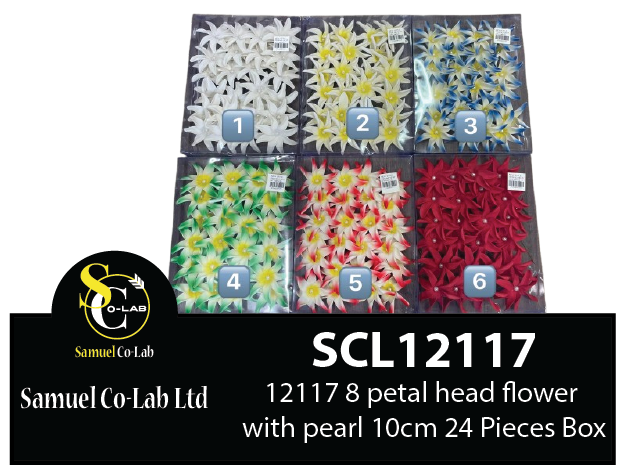 12117 8 Petal Head Flower with pearl 10cm 24 Pieces Per Pack