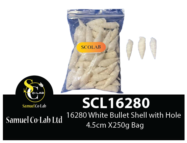 16280 White Bullet Shell with Hole 4.5cm 1x250g Bag